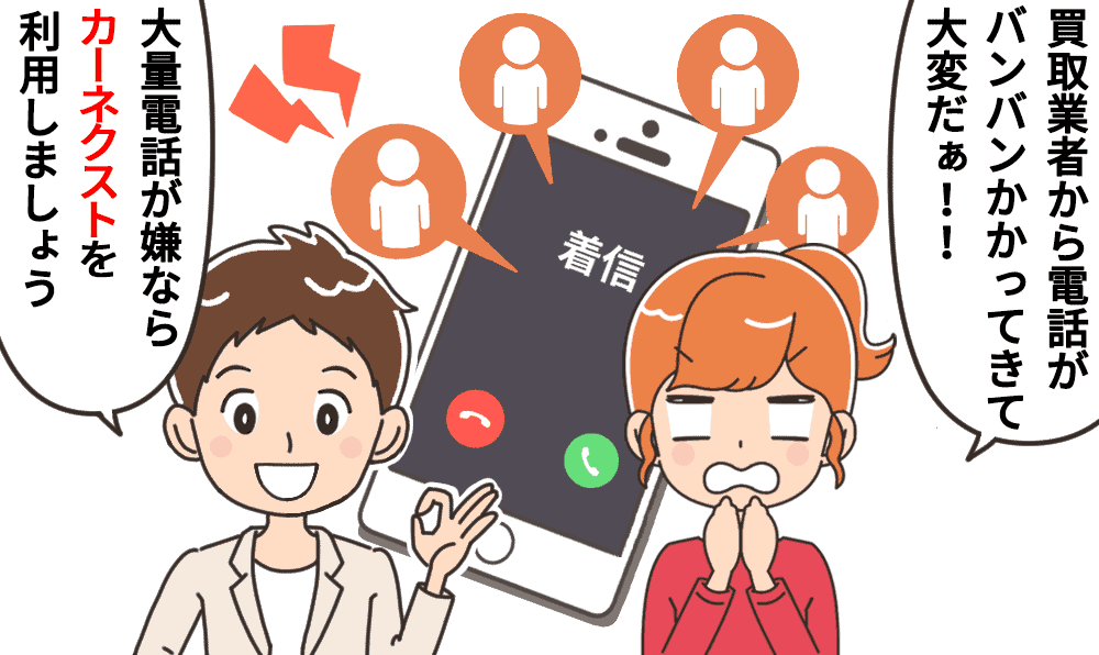 カーネクストは車の査定から買取まで全て自社で行っています。そのため、電話の窓口はカーネクスト1社だけに限定されます。