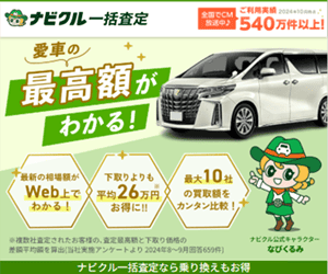 | すぐに査定額(概算)がわかる | ★★★★★ | ナビクル | 無料 | |